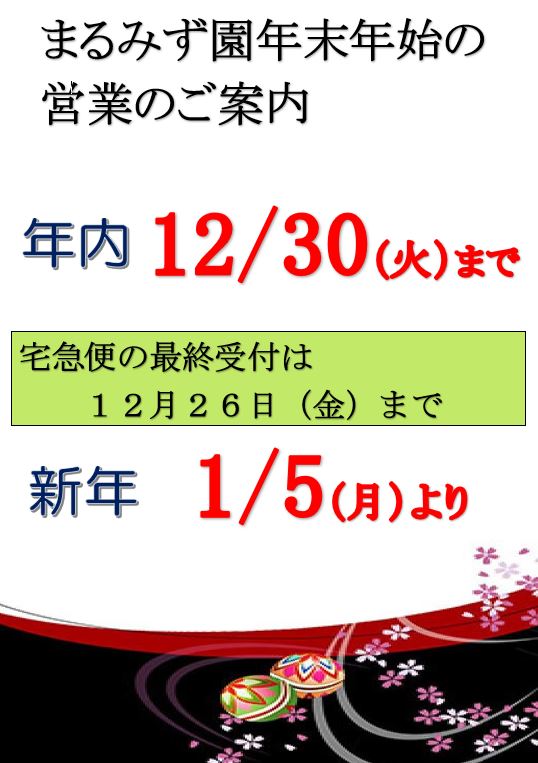 お正月休み12/31~1/4 ★発送は26日迄です★